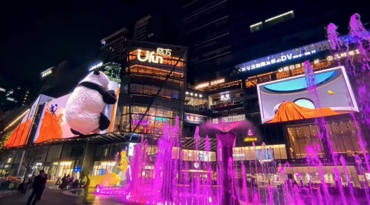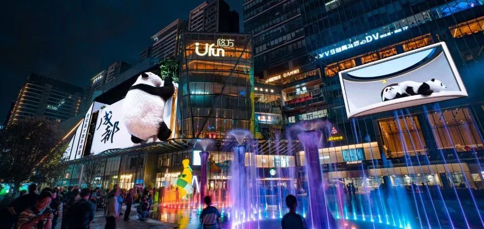 數字化浪潮來襲,數字裸眼大熊貓驚艷亮相成都高新區(qū)交子商圈,高達20余米的大熊貓在邁銳光電制造的巨型LED屏幕上栩栩如生。