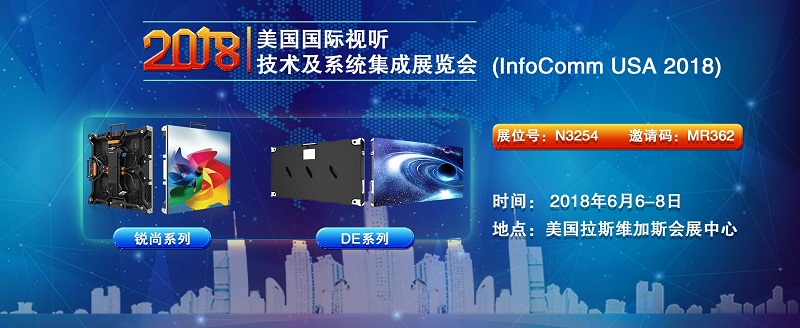 美國時間6月6日,2018美國國際專業(yè)視聽集成設(shè)備與技術(shù)展覽會—InfoComm USA 2018在美國拉斯維加斯會展中心拉開帷幕。本次展會,邁銳光電(展位號:N3254)向全球視聽行業(yè)精英展示了明星款小間距DE系列和暢銷款租賃RS系列產(chǎn)品。