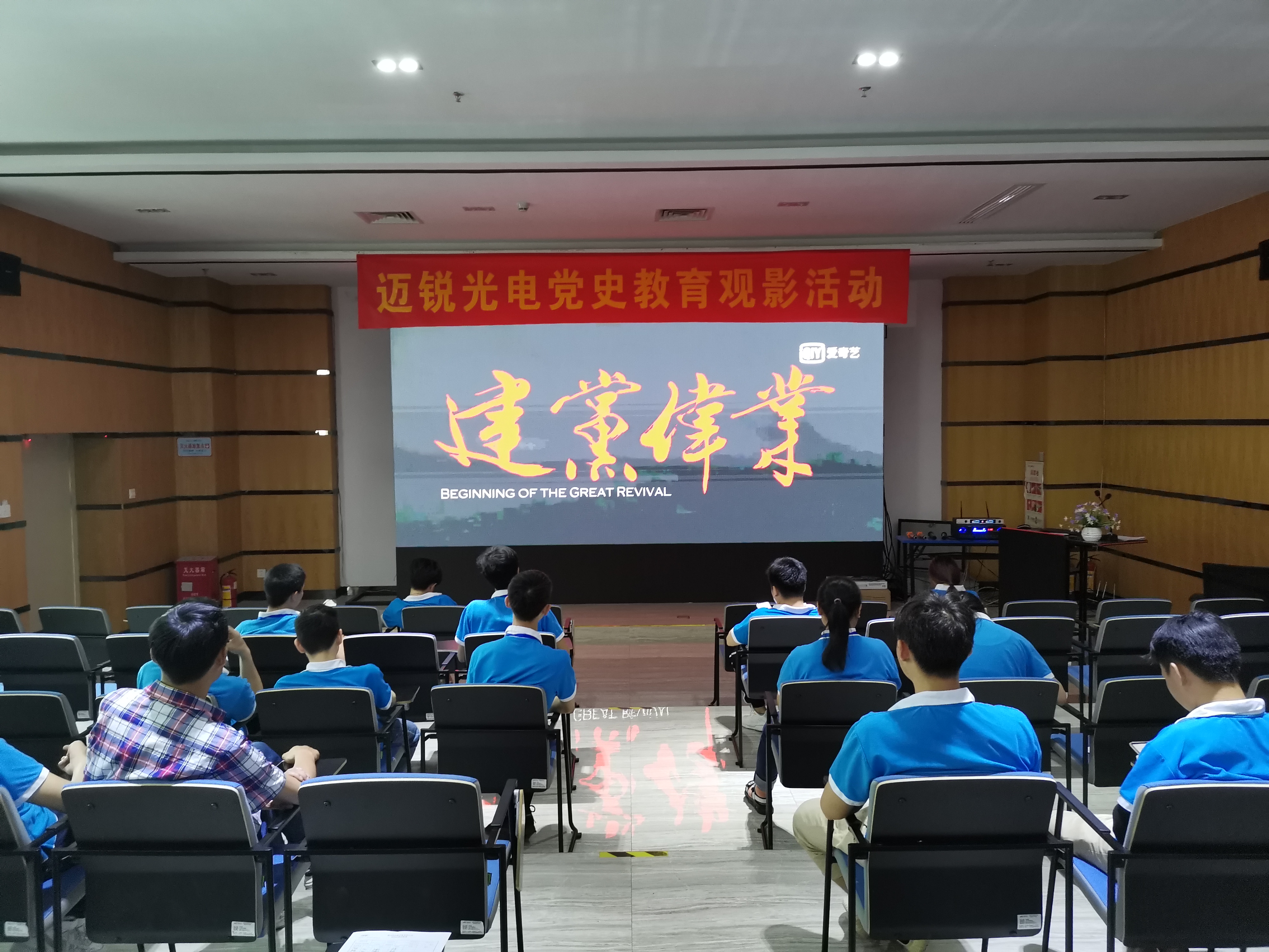在建黨100周年即將來臨之際,為豐富公司員工的文化生活,并加強(qiáng)對(duì)全廠黨員的學(xué)習(xí)培訓(xùn),激發(fā)大家的民族榮譽(yù)感及愛國熱情,邁銳黨支部與行政部于5月共同組織公司全體員工分批觀看黨史教育影片——《建黨偉業(yè)》。以憶崢嶸歲月,溫百年風(fēng)華。