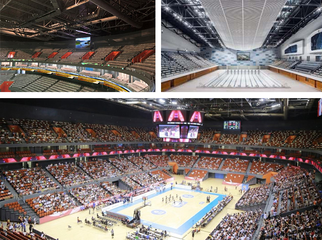2019年,邁銳助力寧波奧體中心建設,為符合國際比賽標準的游泳館以及容納一萬三千人的體育館提供大型綜合性體育解決方案。根據(jù)LED顯示需求,邁銳共安裝414㎡LED顯示屏。助力多場大型國際體育賽事,如國際男籃熱身賽等。