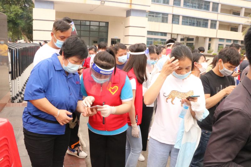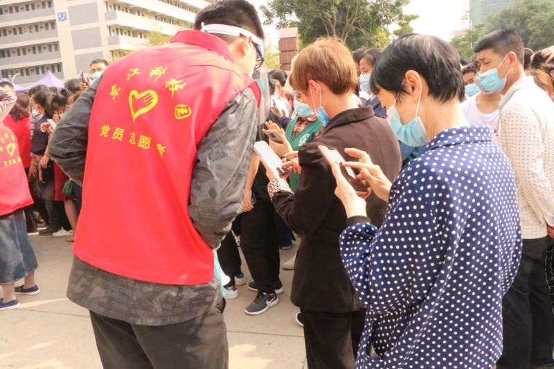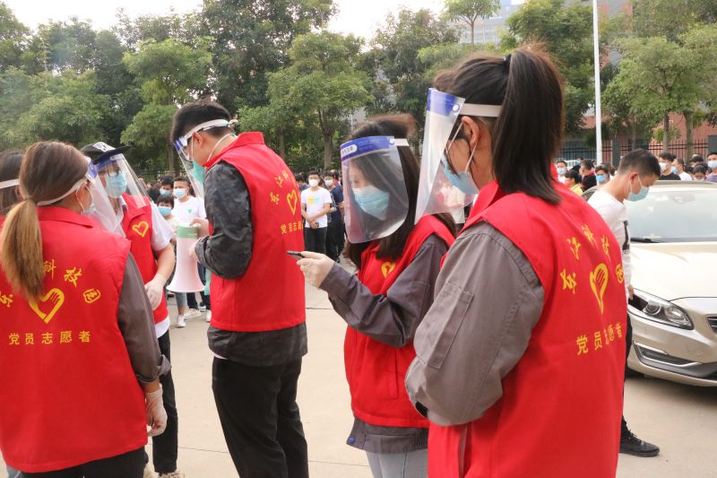 同時(shí)由公司黨支部黨員及積極分子組成的志愿隊(duì)伍負(fù)責(zé)引導(dǎo)分流、行程查詢等工作,確保每個(gè)步驟環(huán)環(huán)相扣、有條不紊。檢測(cè)現(xiàn)場(chǎng),那一抹抹白色與紅色交織的身影,以實(shí)際行動(dòng)筑牢抗疫壁壘。