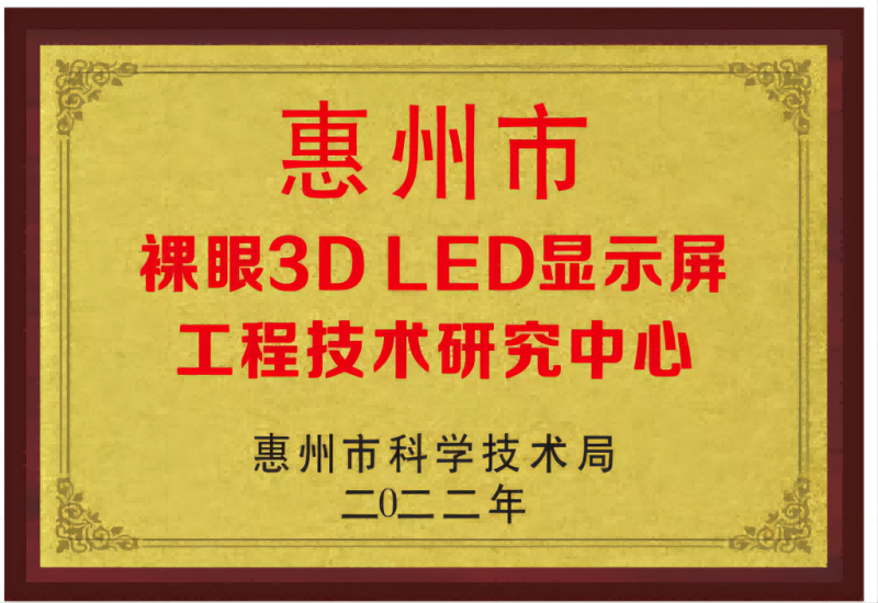 近日,惠州市科學技術局公布了2022年度第一批工程技術研究中心認定名單,邁銳光電申報的《惠州市裸眼3D LED顯示屏工程技術研究中心》獲得惠州市科學技術局認定。
