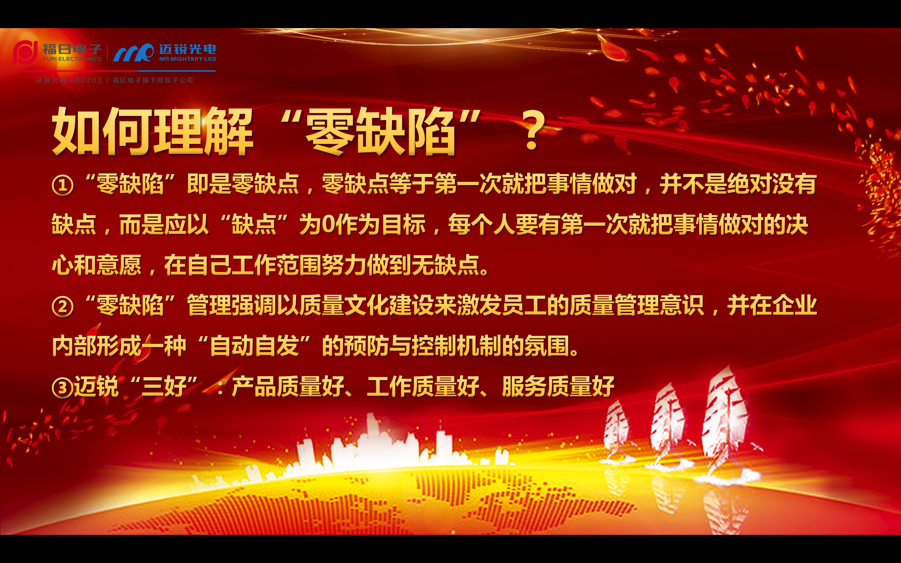 通過“質(zhì)量月”活動,邁銳光電將進一步強調(diào)質(zhì)量的重要性,并鼓勵員工積極參與,保障公司質(zhì)量戰(zhàn)略和質(zhì)量目標的落地與實現(xiàn),引領(lǐng)公司各層級員工樹立“一次做對”的意識與工作理念,切實提高公司的產(chǎn)品、服務和工作質(zhì)量水平,并認真貫徹執(zhí)行董事長強調(diào)的“產(chǎn)品質(zhì)量好、工作質(zhì)量好與服務質(zhì)量好”的“三好”企業(yè)文化,逐步形成質(zhì)量管理全員參與和“零缺陷”質(zhì)量文化,共同推動公司質(zhì)量管理的不斷提升。這次會議將為公司的質(zhì)量月活動奠定基礎(chǔ),為實現(xiàn)公司的質(zhì)量目標和持續(xù)改進提供指導和支持。會議還將就質(zhì)量管理的相關(guān)議題進行深入探討。這將涉及到質(zhì)量管理體系的建立和維護,質(zhì)量控制和改進的方法和工具,以及質(zhì)量風險管理和持續(xù)改進的實踐等。