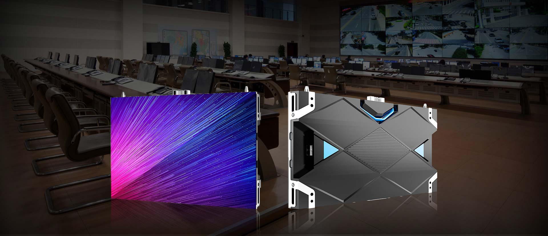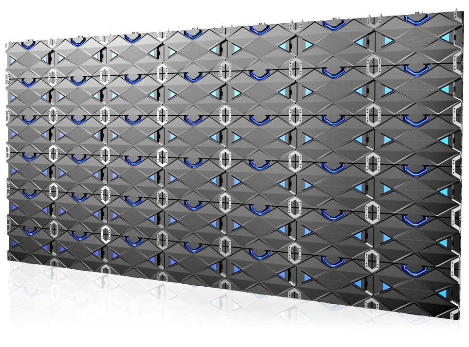 無線材拼接的屏體視覺形象,精密壓鑄鋁材質,CNC精度加工,超高平整度。